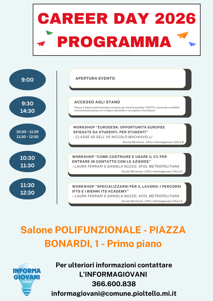 Home » Informagiovani di Pioltello » Informagiovani di Pioltello: Career Day 2026 – Programma dell’evento